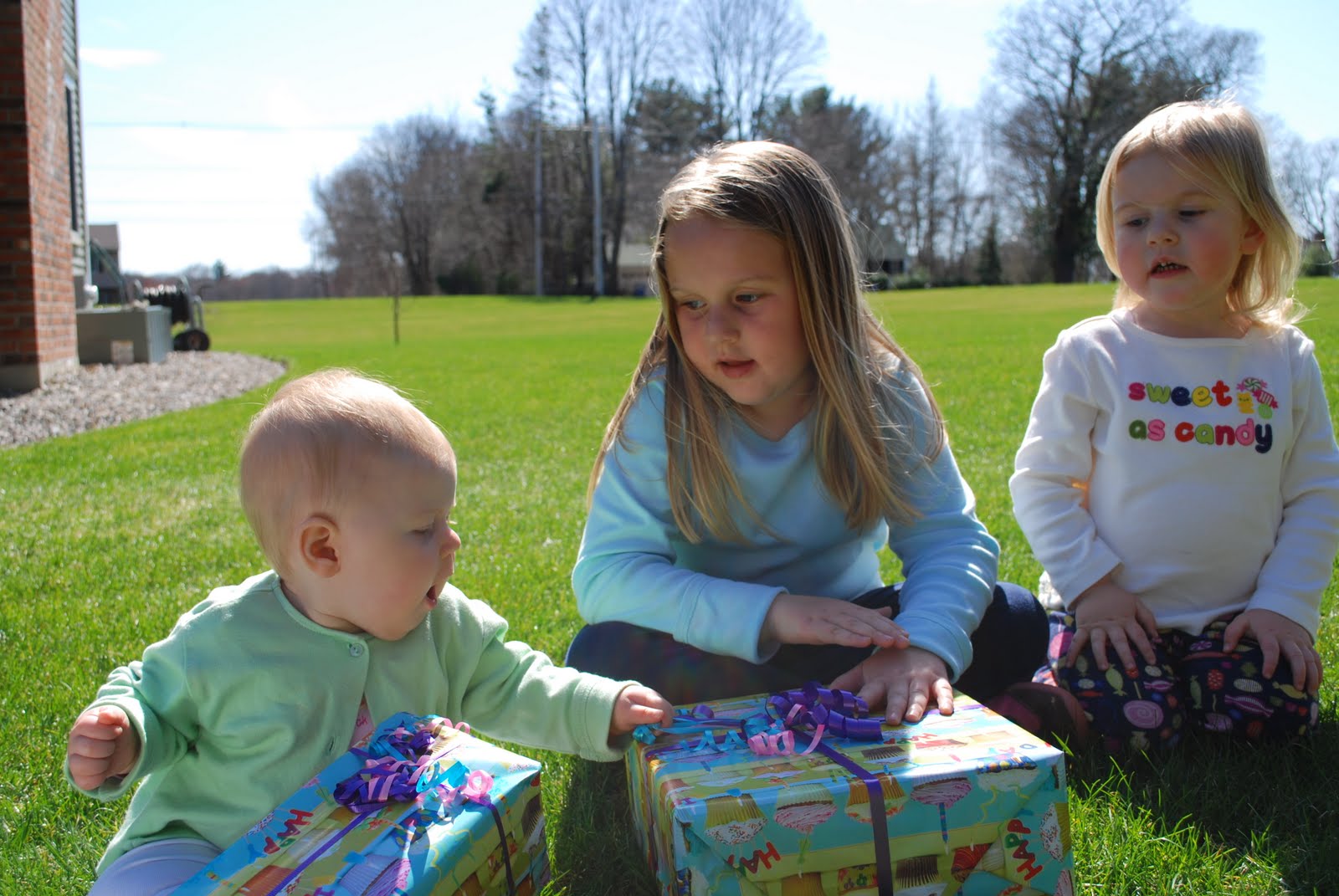 Sophie loved the cruly ribbons on the presents Grammy gave Abbie.